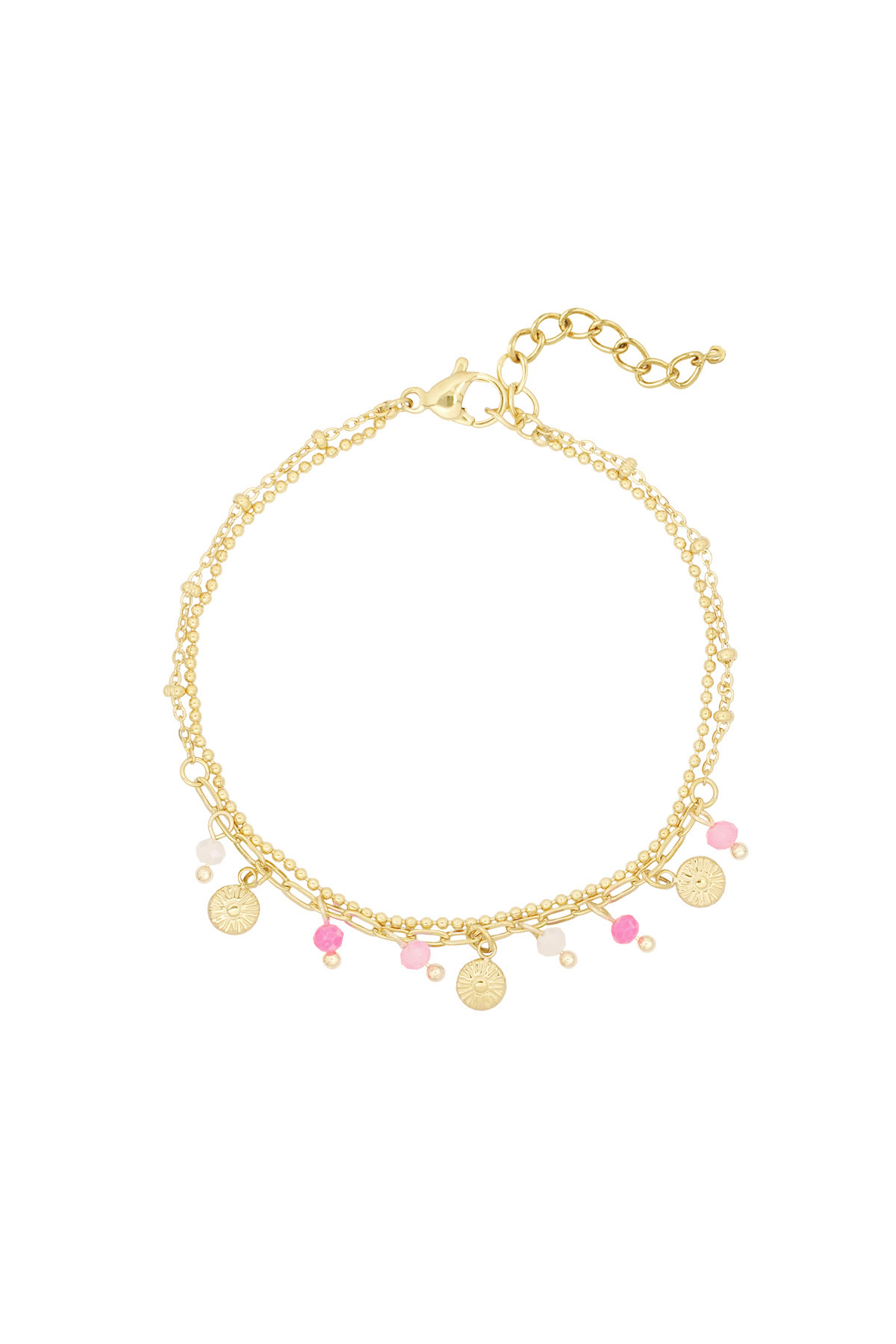 muntjes en kralen armband roze/goud