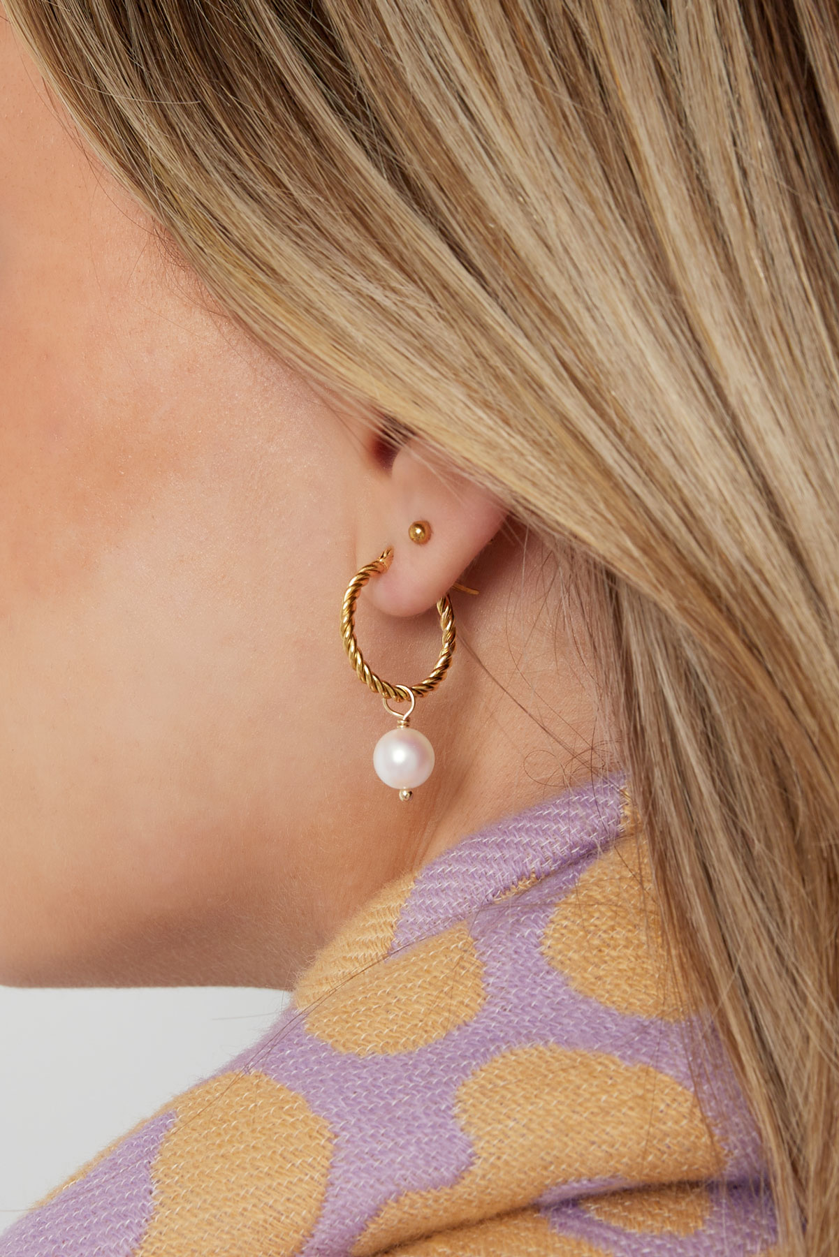 Parel hanger oorbellen in het goud.